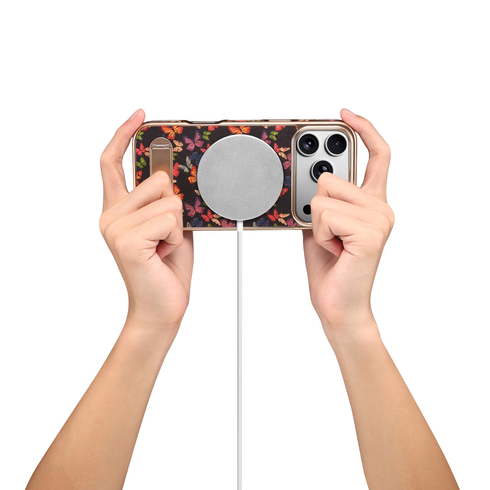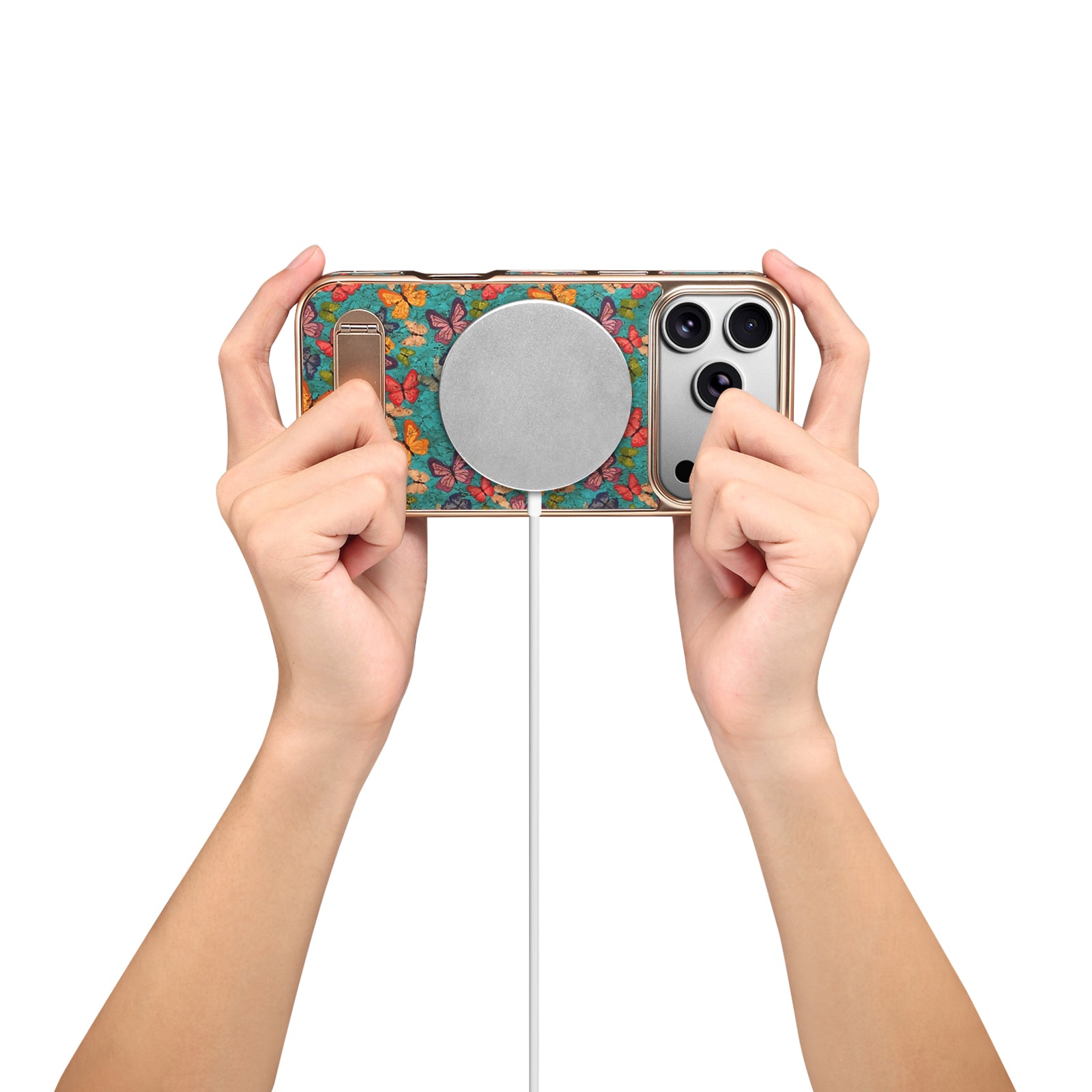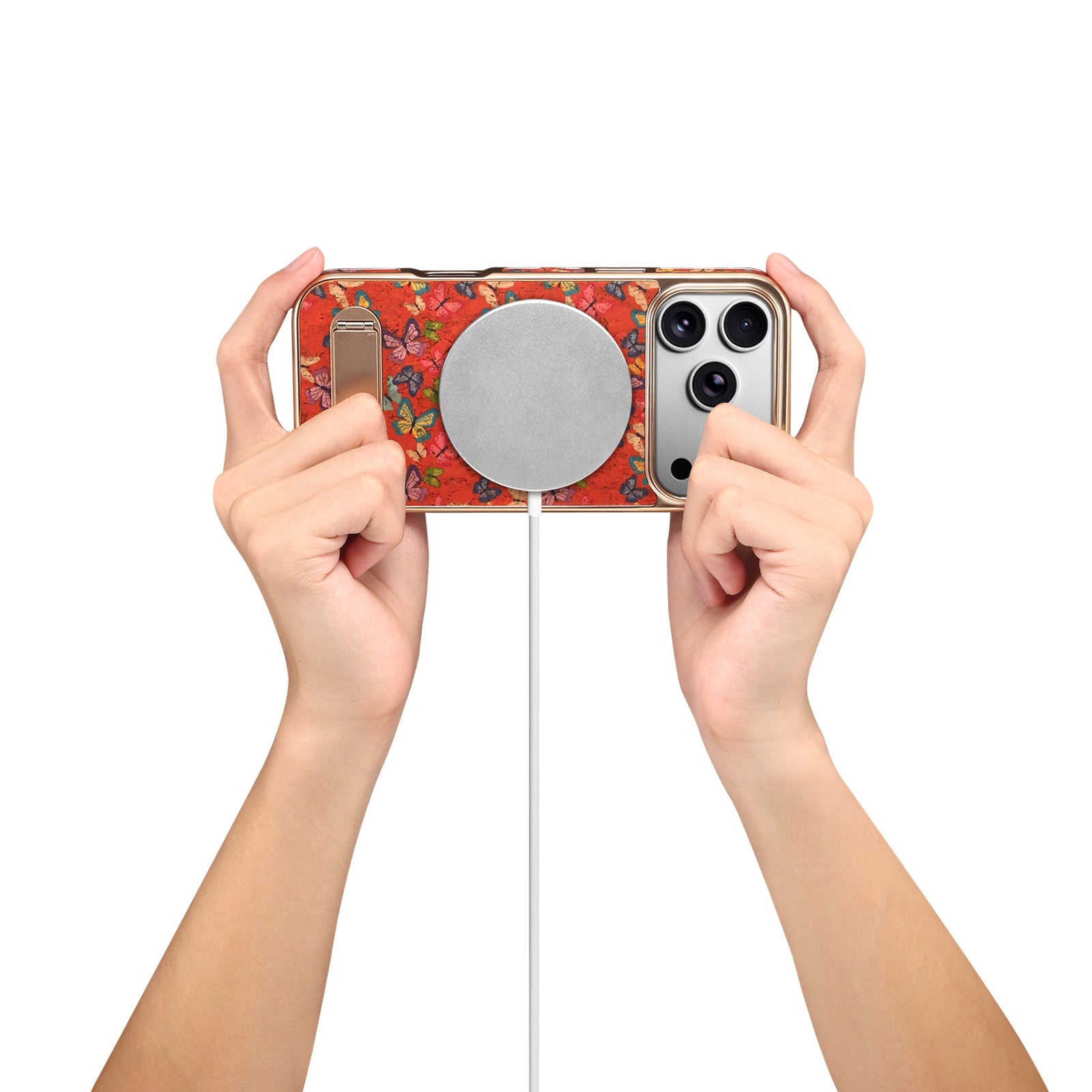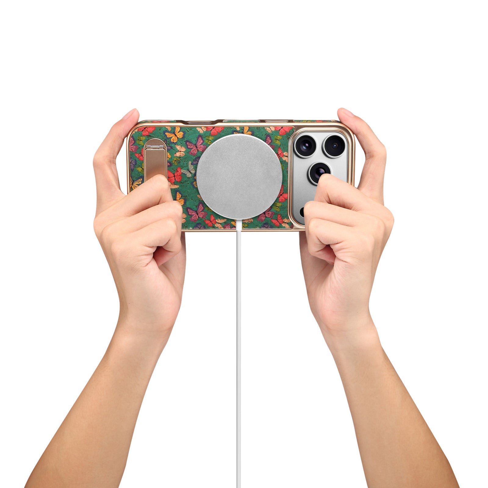 Cork Butterfly In-line Stand Magnetic Electroplated Phone Case
