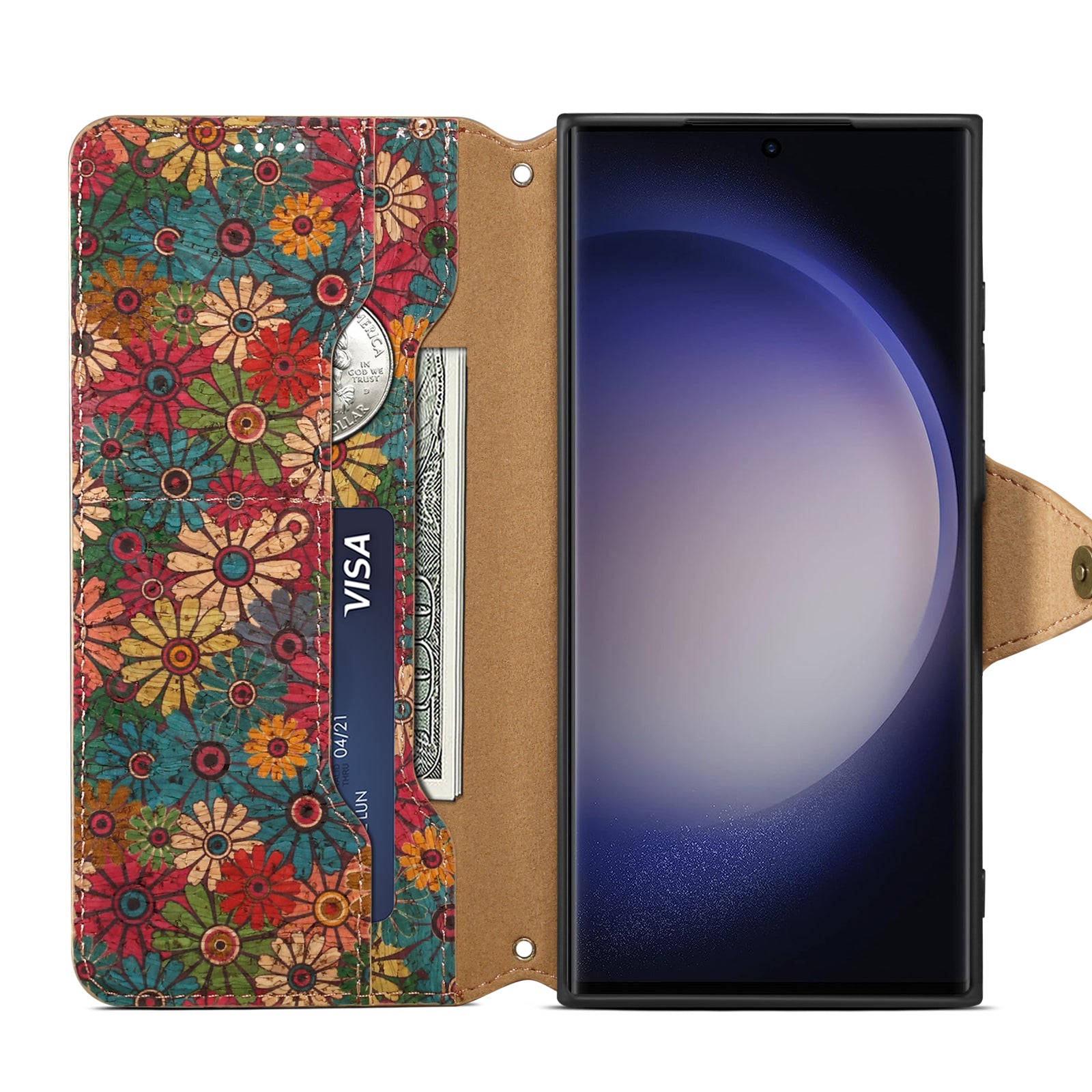 Cork Floral Button Wallet Stand Phone Case (For Samsung)