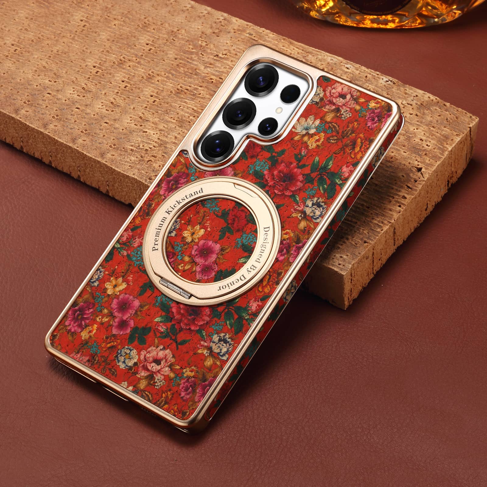 Cork Floral Rotating Electroplated Magnetic Phone Case (For Samsung)