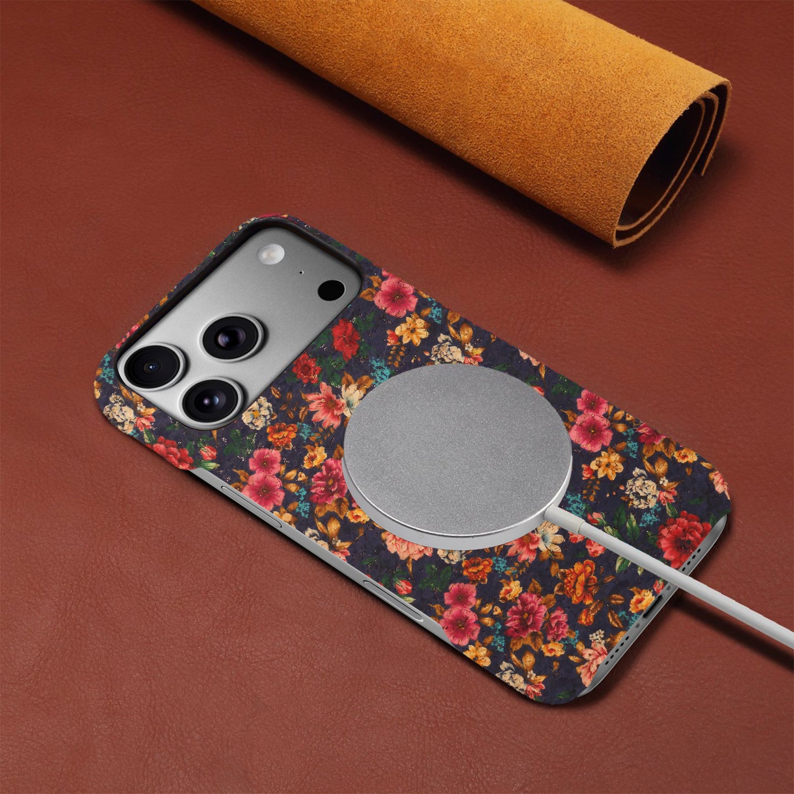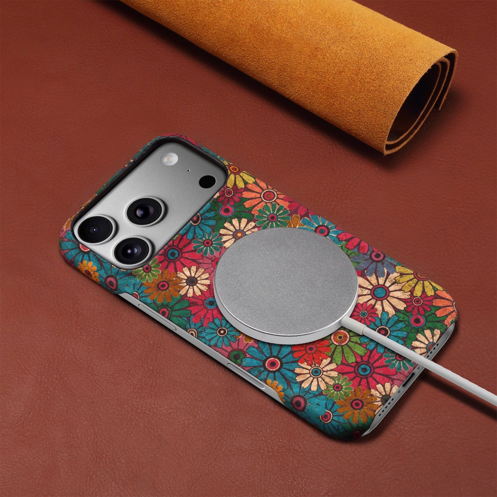Floral Pattern Cork PC Phone Case