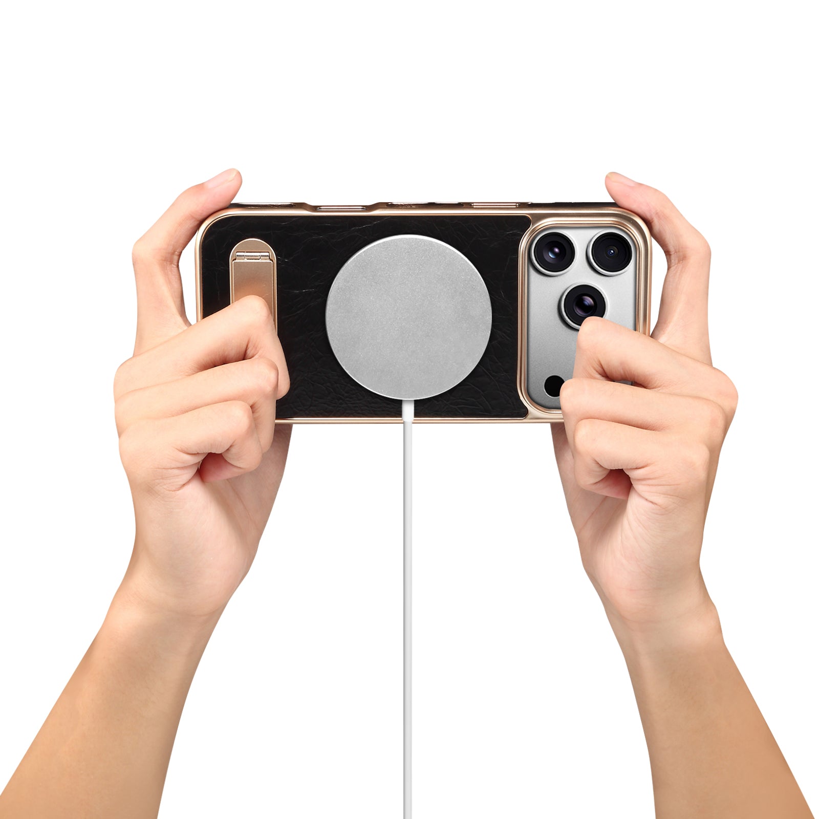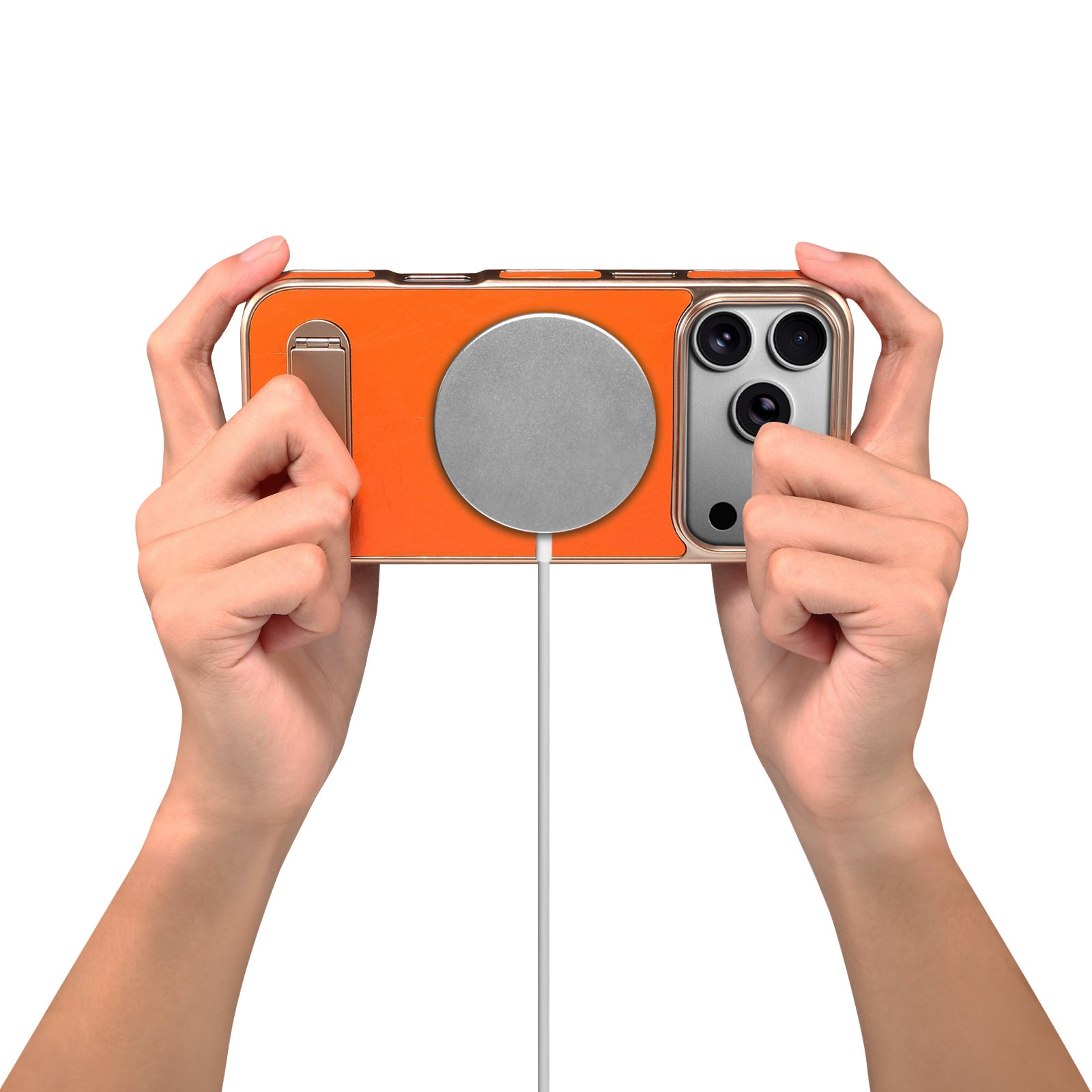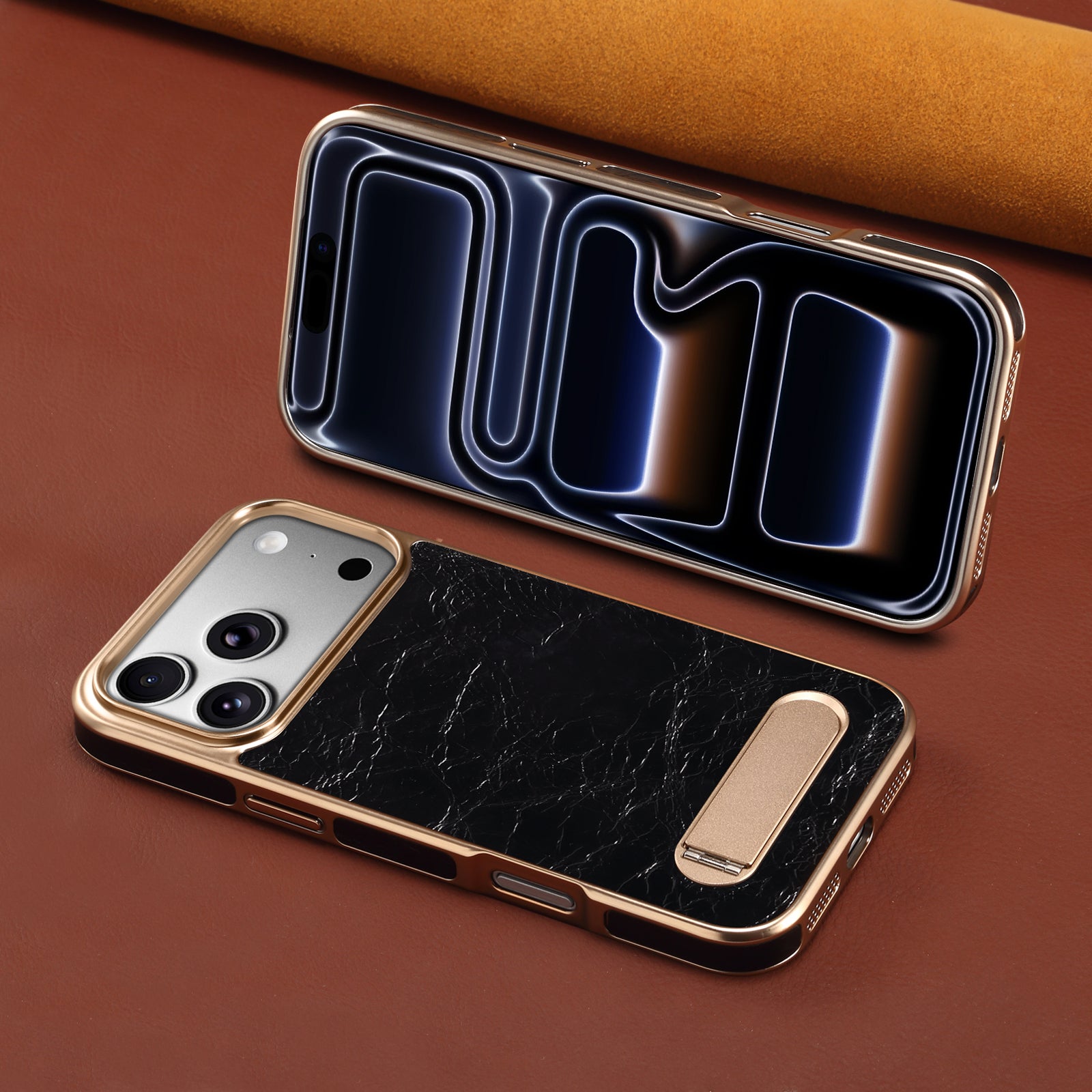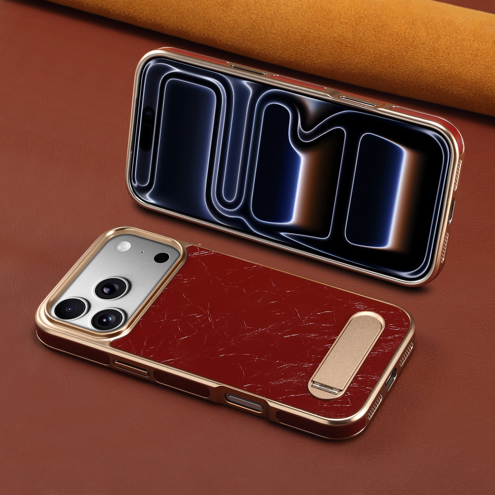 Genuine Leather In-line Stand Magnetic Electroplated Phone Case