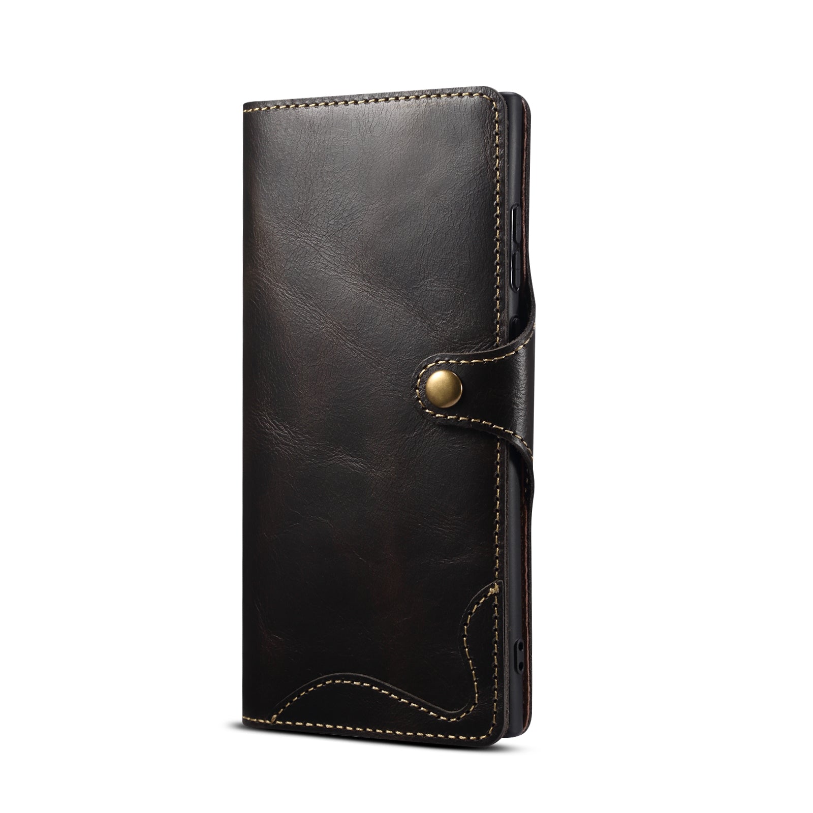 Genuine Leather Oil Wax Cowhide Button Wallet Phone Case (For Samsung)