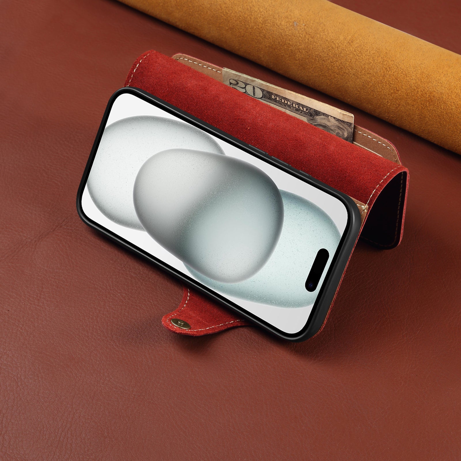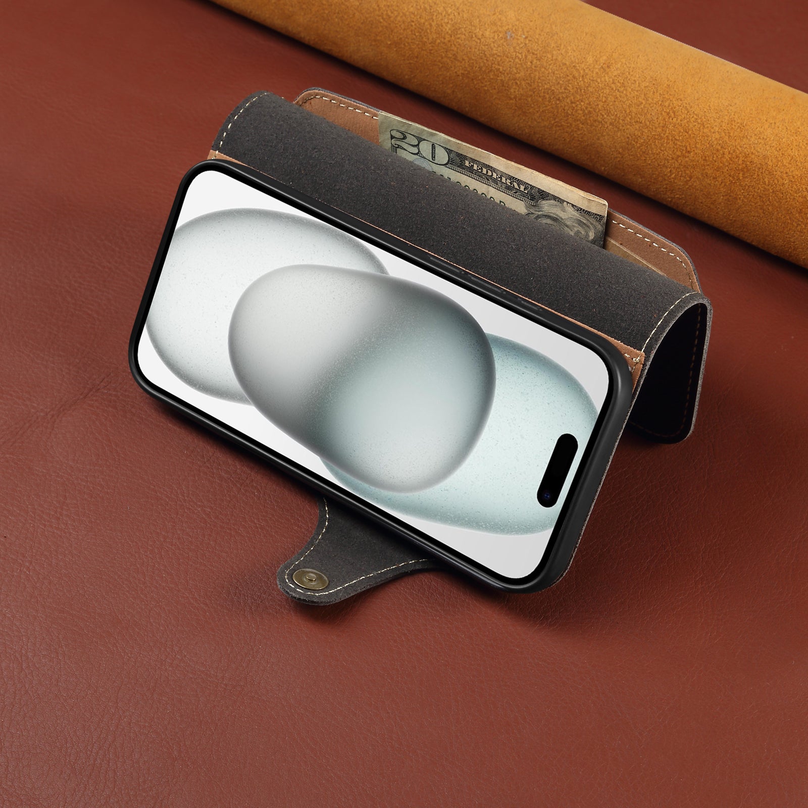 Genuine Oil Wax Cowhide Stand Wallet Phone Case