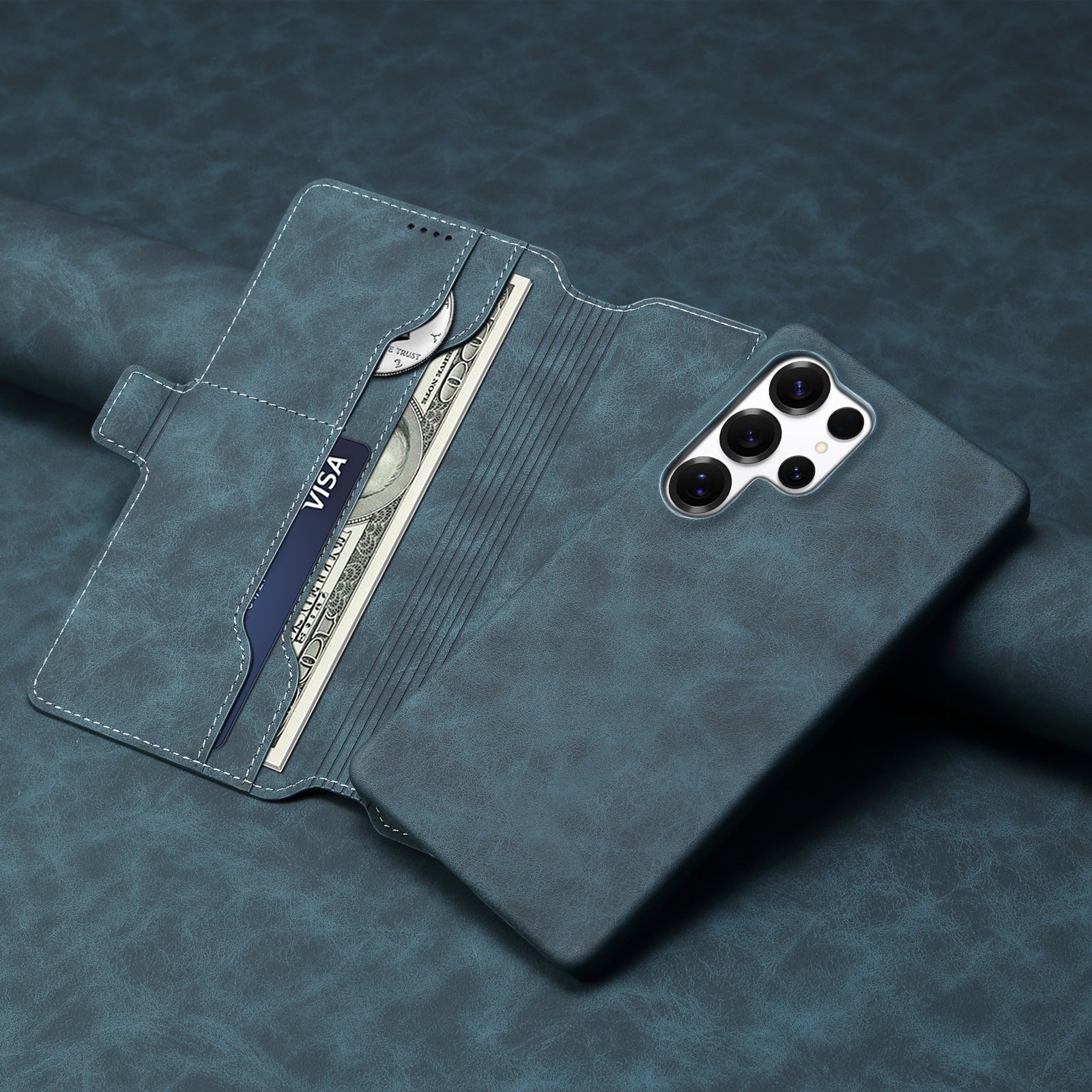 PU Retro Faux Leather Detachable Magnetic Wallet Stand Phone Case (For Samsung)