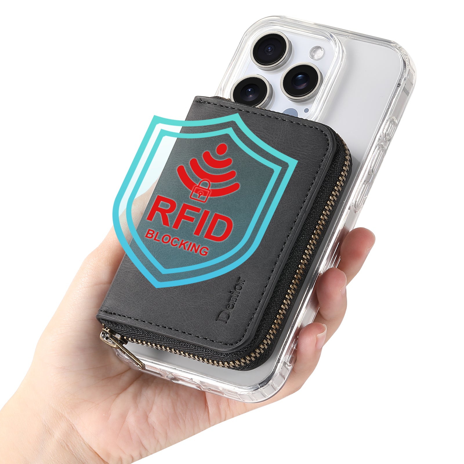 PU Skin-Feel Magnetic Zipper Card Holder